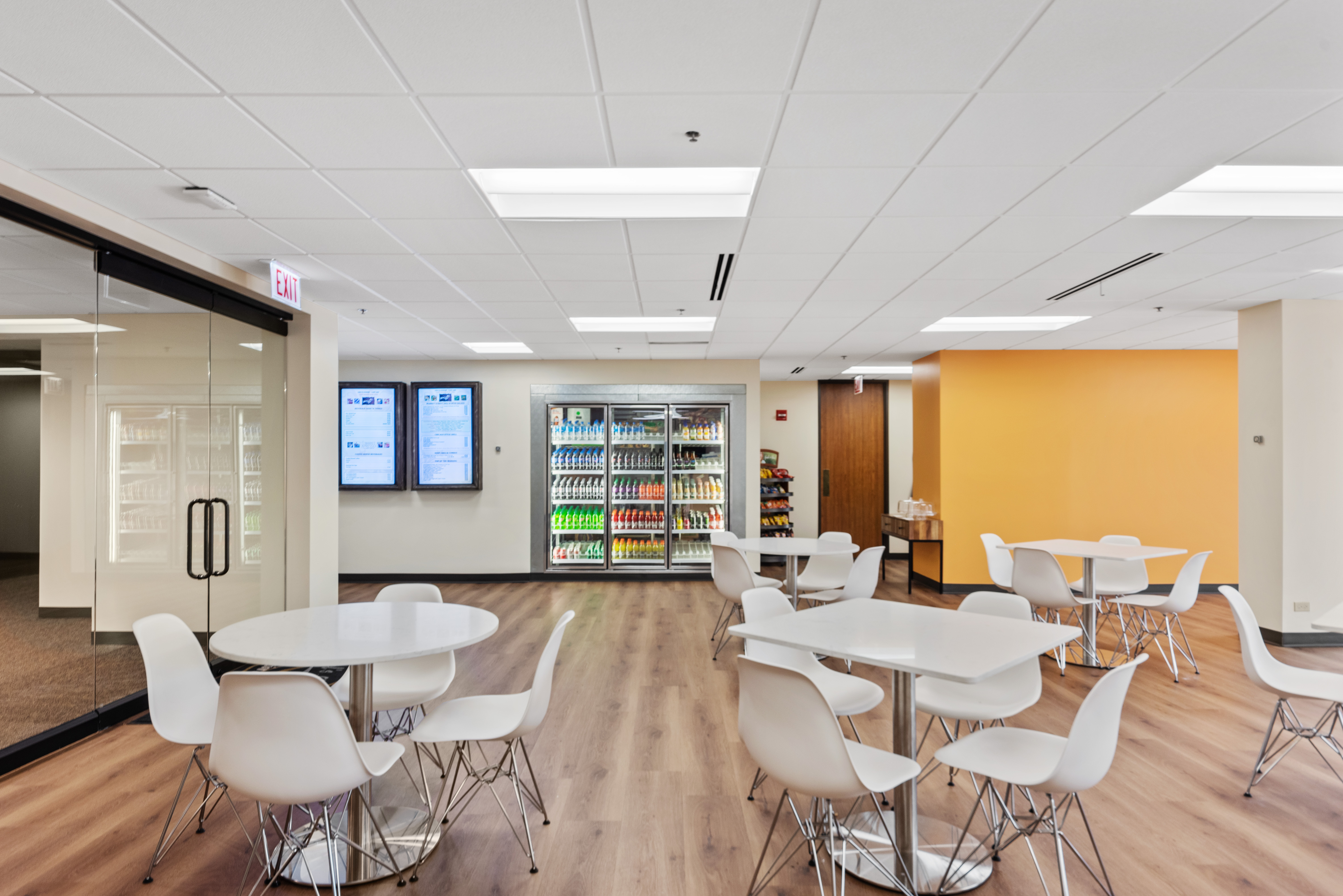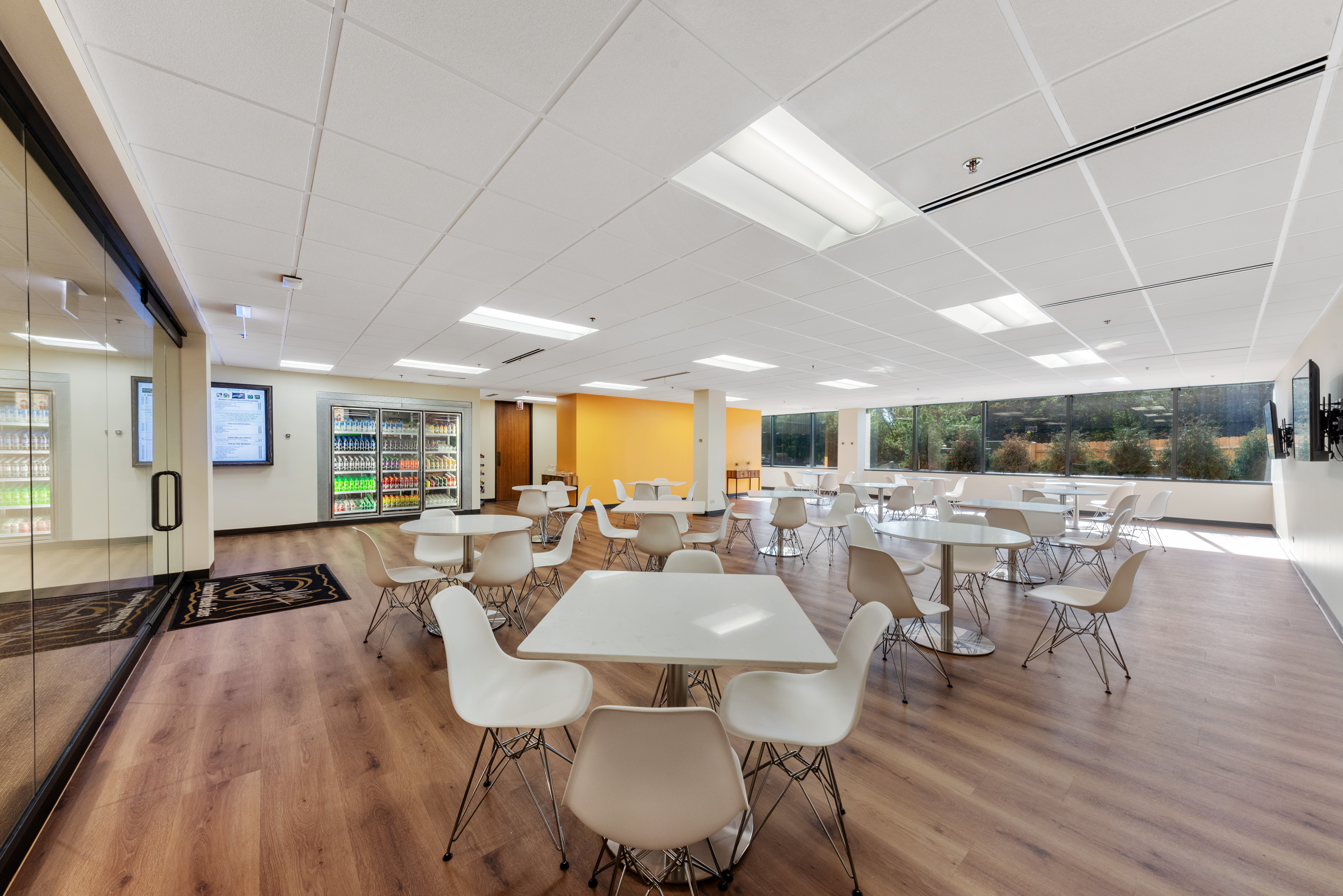 The spacious wet-bar service area adjacent to the auditorium allows for hosting lunches or break-out sessions